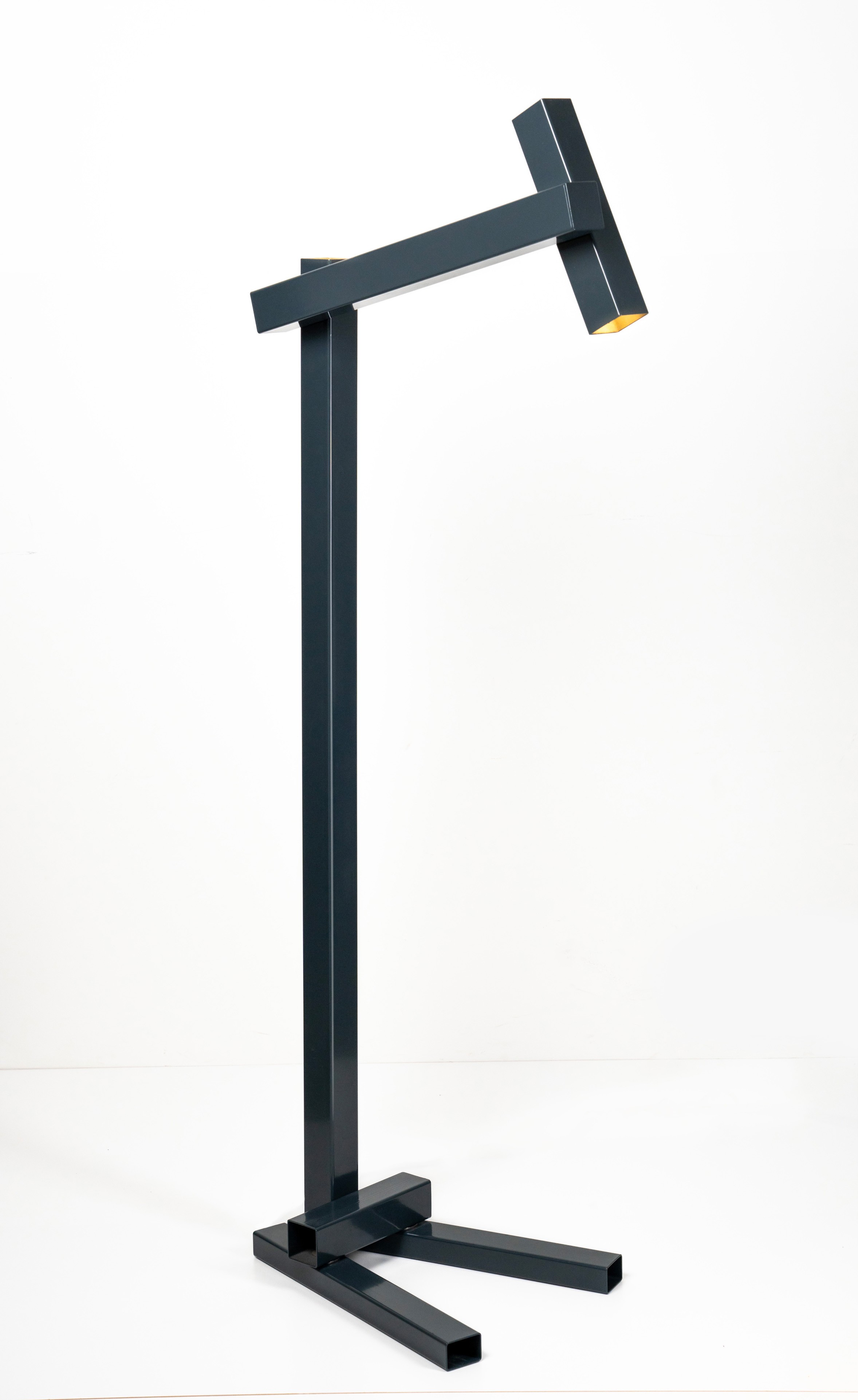 Deze staande lamp met industriële look geeft gericht licht naar beneden en geeft ook verlichting naar boven zodat de ruimte via het plafond wordt verlicht.
